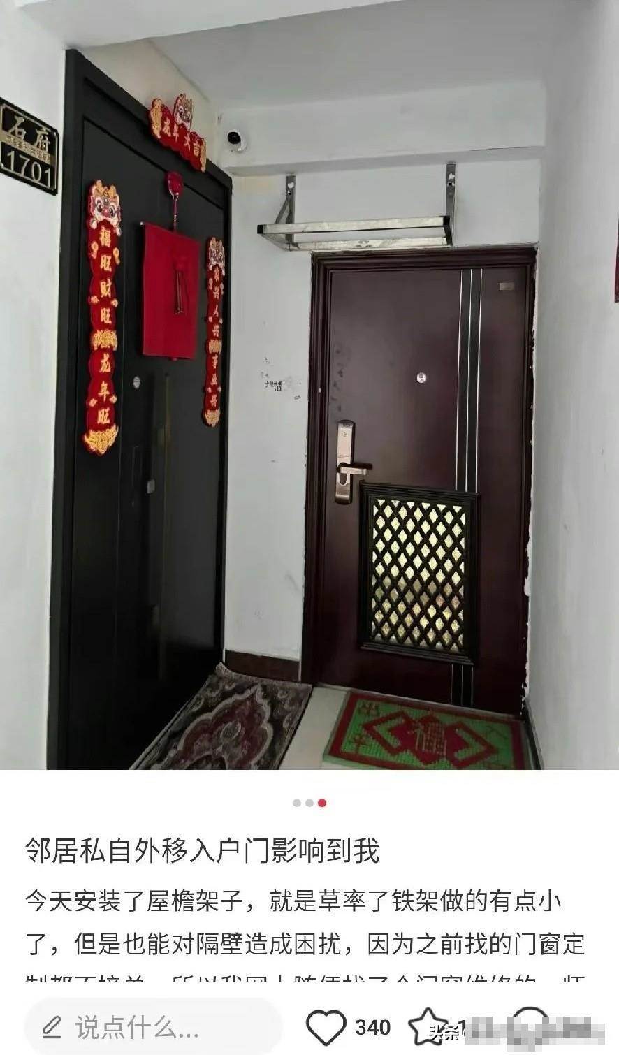 門前的公共場所,竟然被鄰居加裝了防盜網,成了他的私人空間,只給網友家留了一條狹窄的通道。 鄰居的行為太過分,損人利己,欺人太甚。網友「1句話」道破真相,從風水上來說,鄰居談不上欺壓你,倒像是在坐牢。