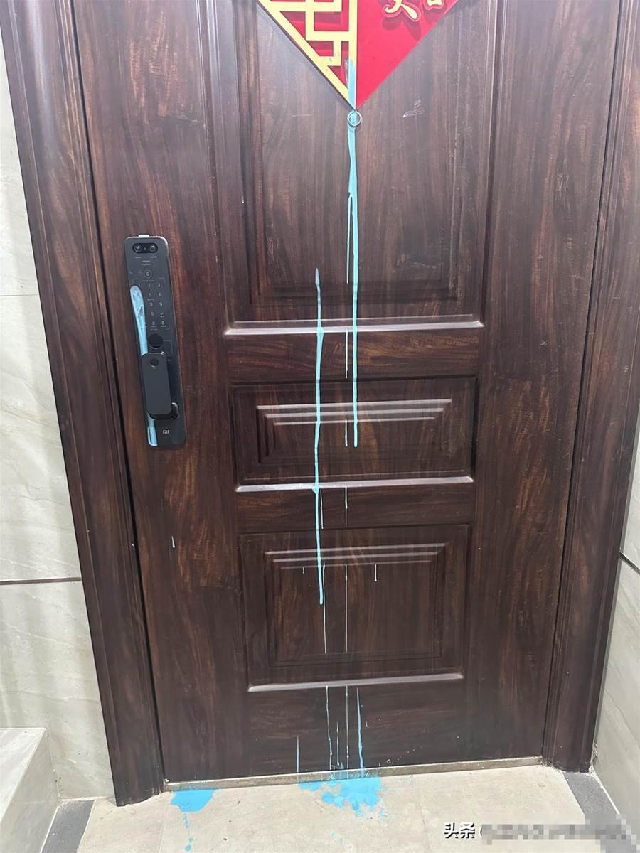 我們小區順豐平時都會把快遞放在家門口,今天下午吃完飯回來看到大門人都傻了,快遞被人拆了不說,還把里面的藍色洗發水擠了很多涂在我家大門上。