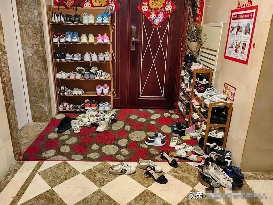 每天從電梯口進進出出,就能看到她家一地的鞋子,場面跟爆裝備一樣。