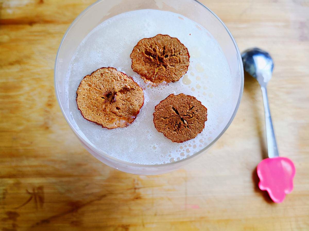 7.將涼下來的柚子汁倒入裝有蜂蜜的杯子里,攪拌均勻,再把之前的棗片擺放在上面,一杯好喝的蜂蜜柚子茶就做好了。
