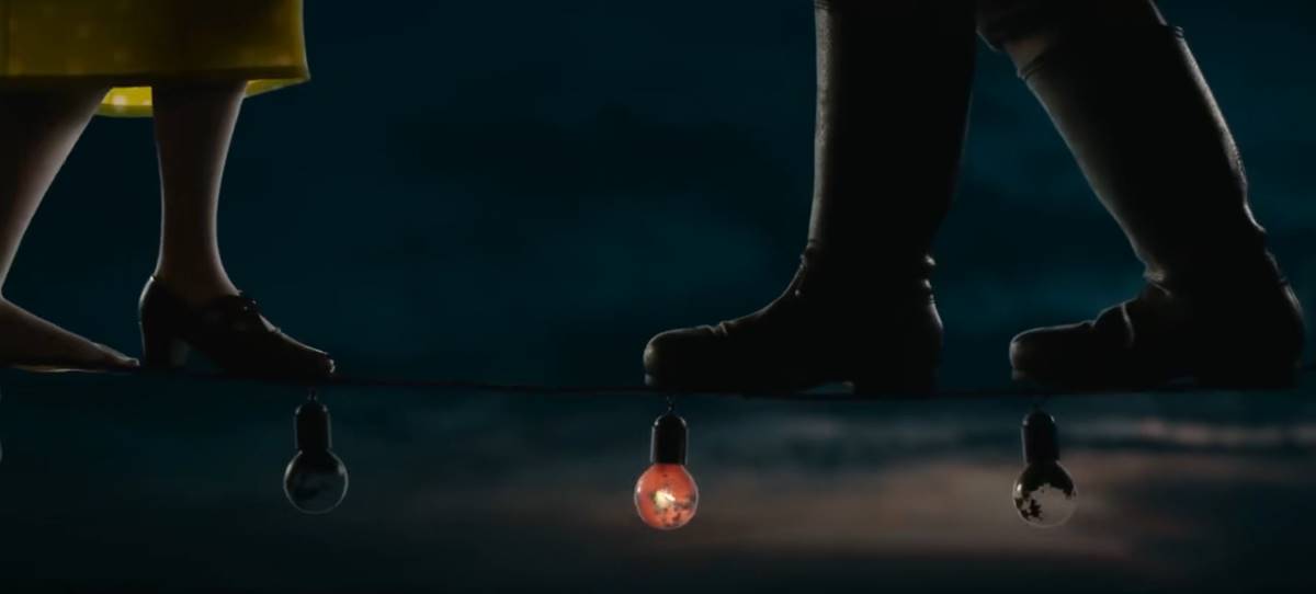 女孩的動作使繩子不停晃動,讓小麻雀不那麼快樂。上學時他們一起安靜地走路。