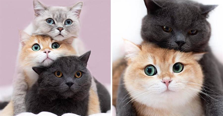 感情超好!三色貓咪愛玩「疊疊貓」,最底下那隻:頭重重der…