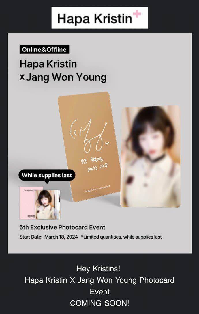 南韓大勢女團IVE人氣成員張員瑛近日為隱形眼鏡代言,而品牌也特意推出小卡(經紀公司官方發布,隨實體專輯或者實物周邊產品一起附贈的印制偶像自拍的紙質版卡片),