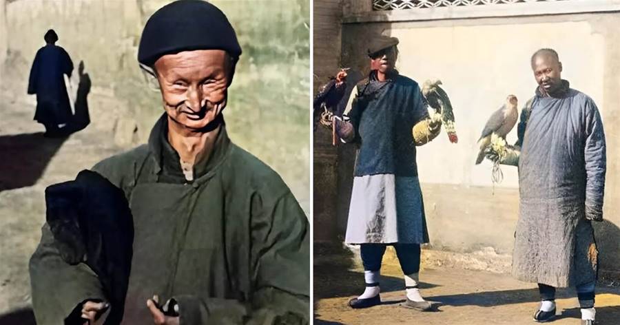 清末上色老照片:長相酷似外星人的太監,街頭玩鷹的八旗子弟